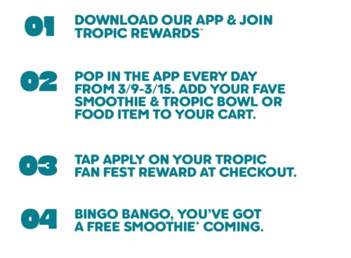 Free Smoothies at Tropical Smoothie Cafe for Fan Fest Through March 15th (with Purchase)