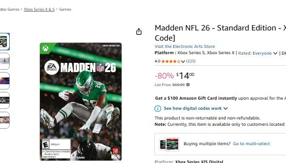 Madden 2026 Xbox Game. Reg $69.99, now 80% off to $14