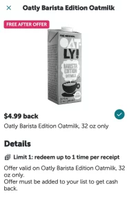 Free Oatly Barista Oatmilk at Target via Ibotta Grocery Rebate Read More »