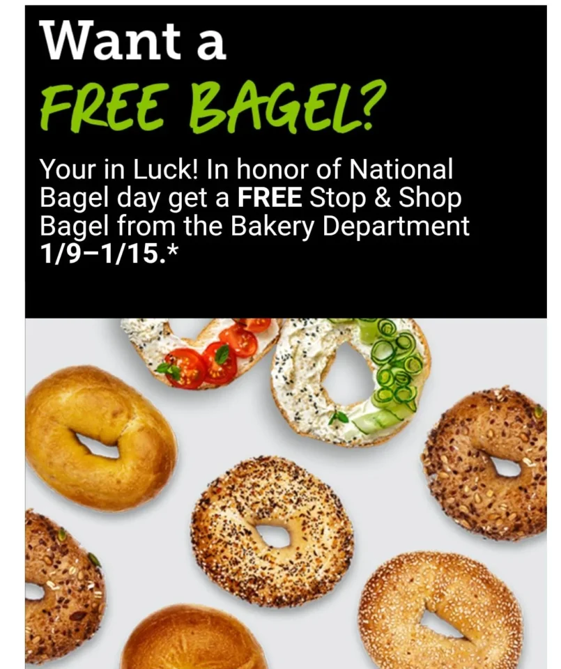 Free bagel at Stop and Shop Leave a Comment / Free Food / By Awesome Freebies How To Redeem Activate digital coupon at the kiosk. Good until January 15th. It won’t show up on the app even when you activate it at the kiosk. It will be loaded to your card but you won’t will see it on the app.