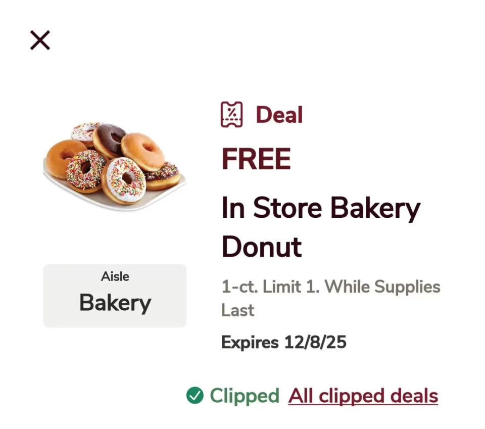 Free Donut at Safeway,Albertsons, Jewel Osco, and Other Affiliate Stores Leave a Comment / Free Food / By Awesome Freebies How To Redeem Check out the rewards app for any of the Albertsons/Safeway affiliate stores and clip the coupon. Make sure to clip it before Monday the 8th.