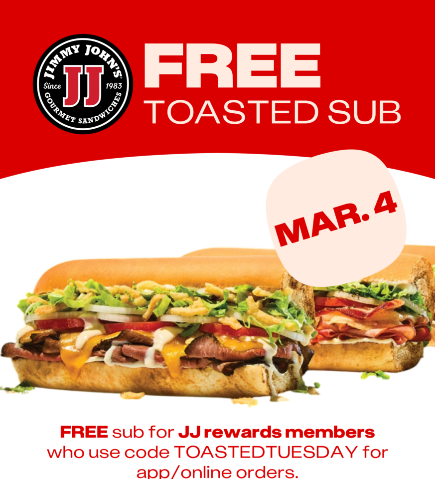 Free Toasted Sub at Jimmy John’s – March 4th 2025 Leave a Comment / Free Food / By Awesome Freebies How To Redeem