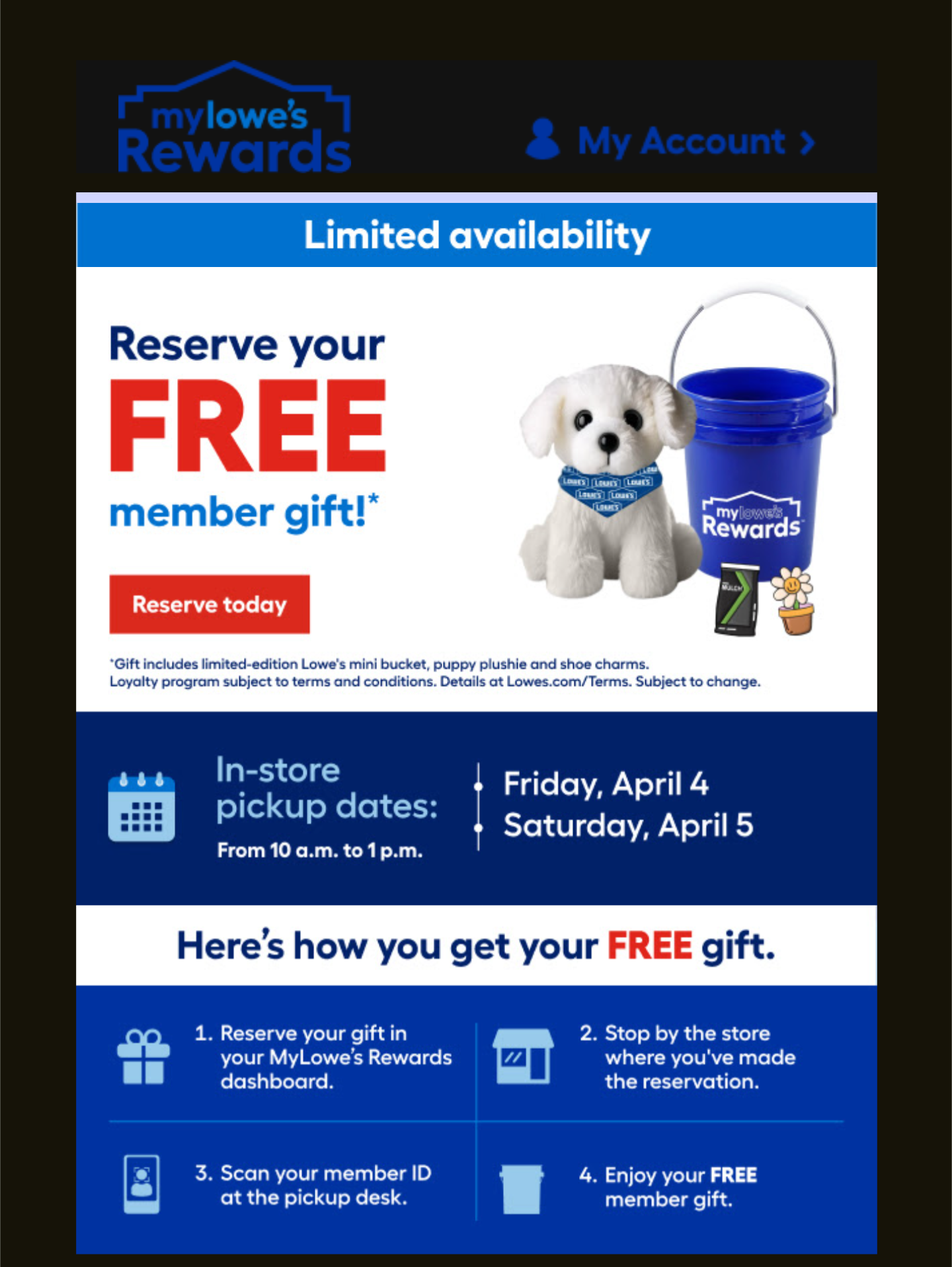 Free Mini Bucket + Plush Gift and More from Lowe’s on April 4th and 5th