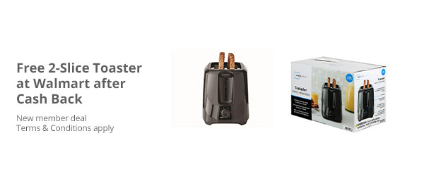 - TopCashback is giving new members a FREE 2-Slice Toaster at Walmart! Spend a total of $11.48 or more on a Mainstays 2-Slice Toaster at Walmart and get $12.33 in Cash Back.