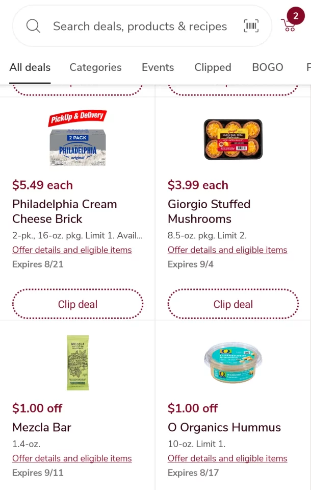 This lets you see what deals are available and ensures you don’t forget to clip the deals before checking out (for store rewards accounts). Even for rebate apps, it’s better to clip ahead of time because sometimes the deal disappears for new clips but will stay in your account a little longer if you already clipped it.